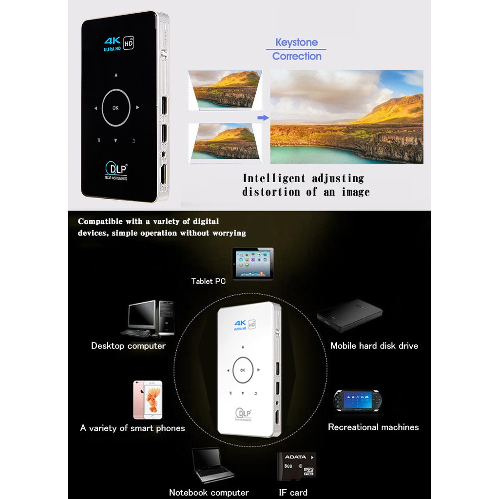 Proyektor Mini Smart Android C6 DLP Projector 4K 4100 MAH Infocus Portable Home Theater