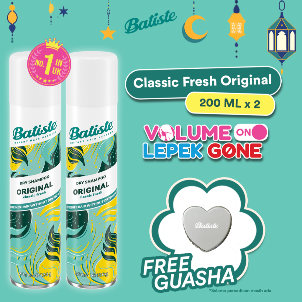 BUY 1 GET 1 Batiste Clean & Classic Original Dry Shampoo 200ml (Shampoo Kering Tanpa Bilas) FREE Guasha
