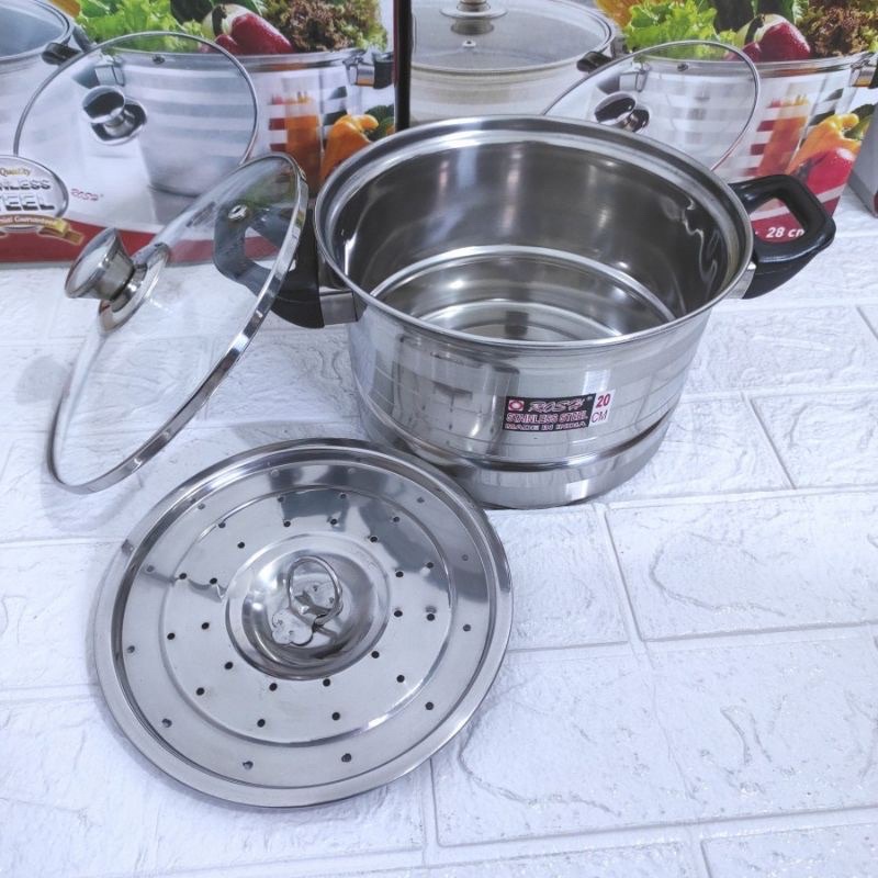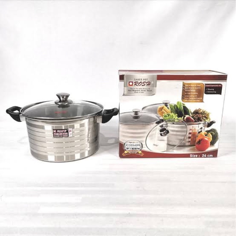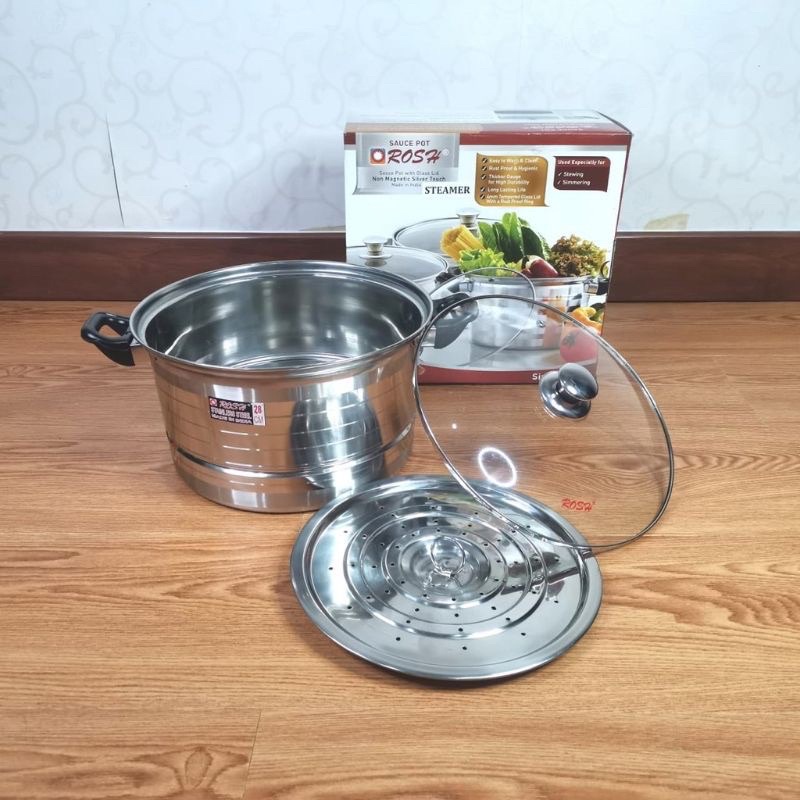 Panci Stainless / Panci Rosh / Panci Stainless Tutup Kaca Rosh Saucepot Steamer 18-28cm