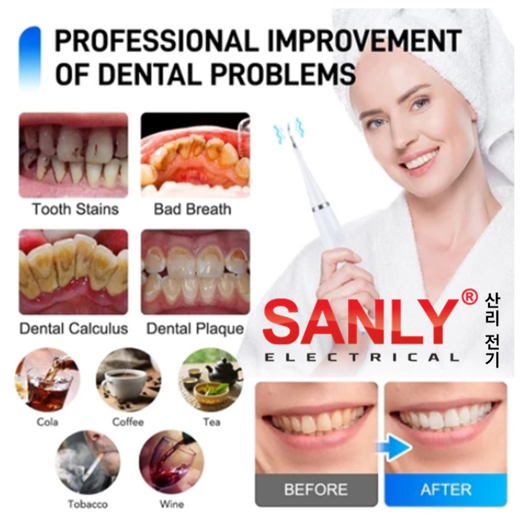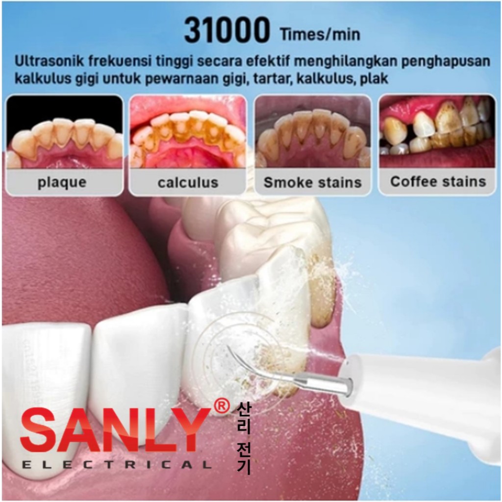 Smart Ultrasonic Scaling Alat Pembersih Karang Plak Sikat Gigi Electric 2 IN 1 Set Dental Scaling Sonic Elektrik 1 Set 5 Modes