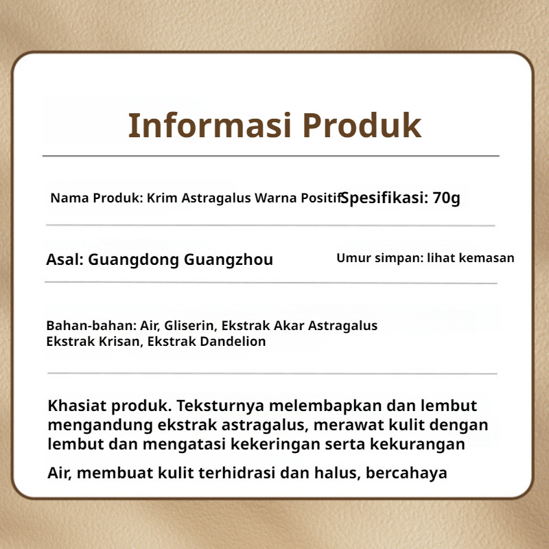 [24 Jam Lembab Segar] Krim Astragalus Pelembab Non-Greasy / Krim Wajah Melembabkan Kulit Kering / Skincare Rutin Pagi Malam