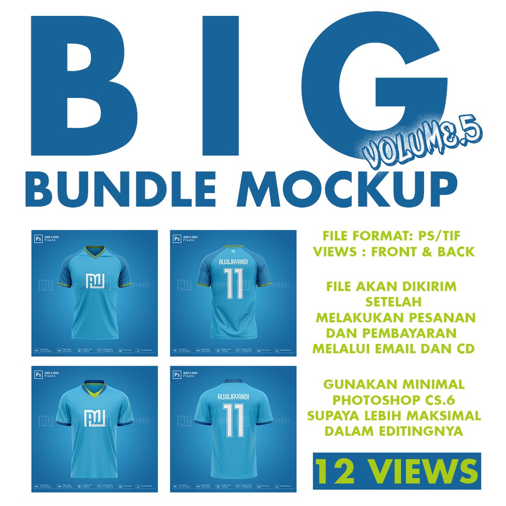 MOCKUP JERSEY BOLA BIG BUNDLE VOLUME.5 - 6000x6000 Pixels - FRONT & BACK (12 VIEWS)