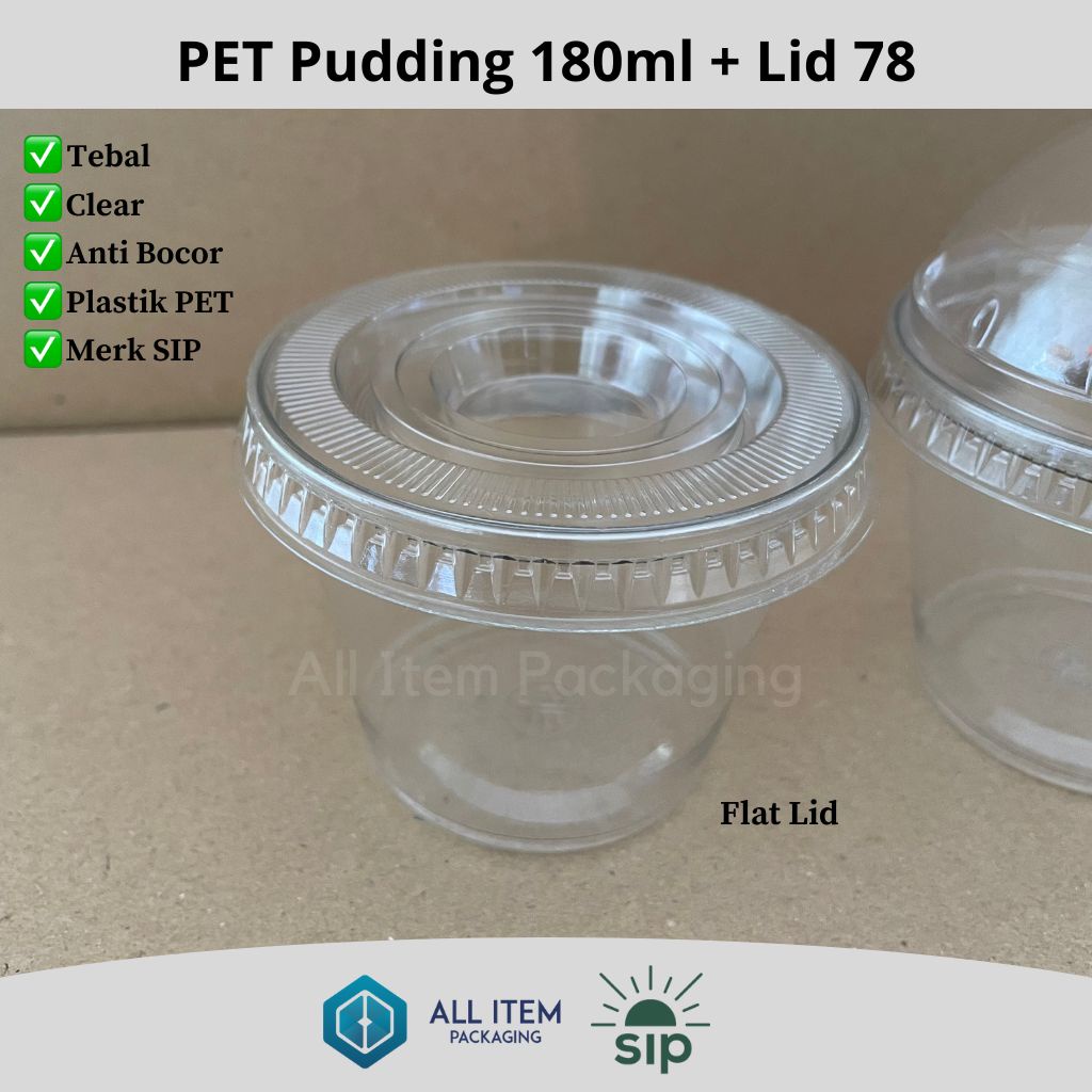 Pudding Cup PET / Gelas Puding 180ml + Lid @50 Pcs SIP 78