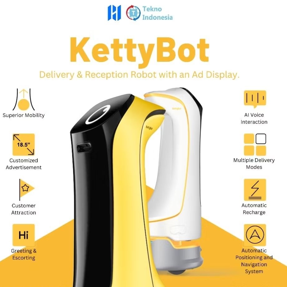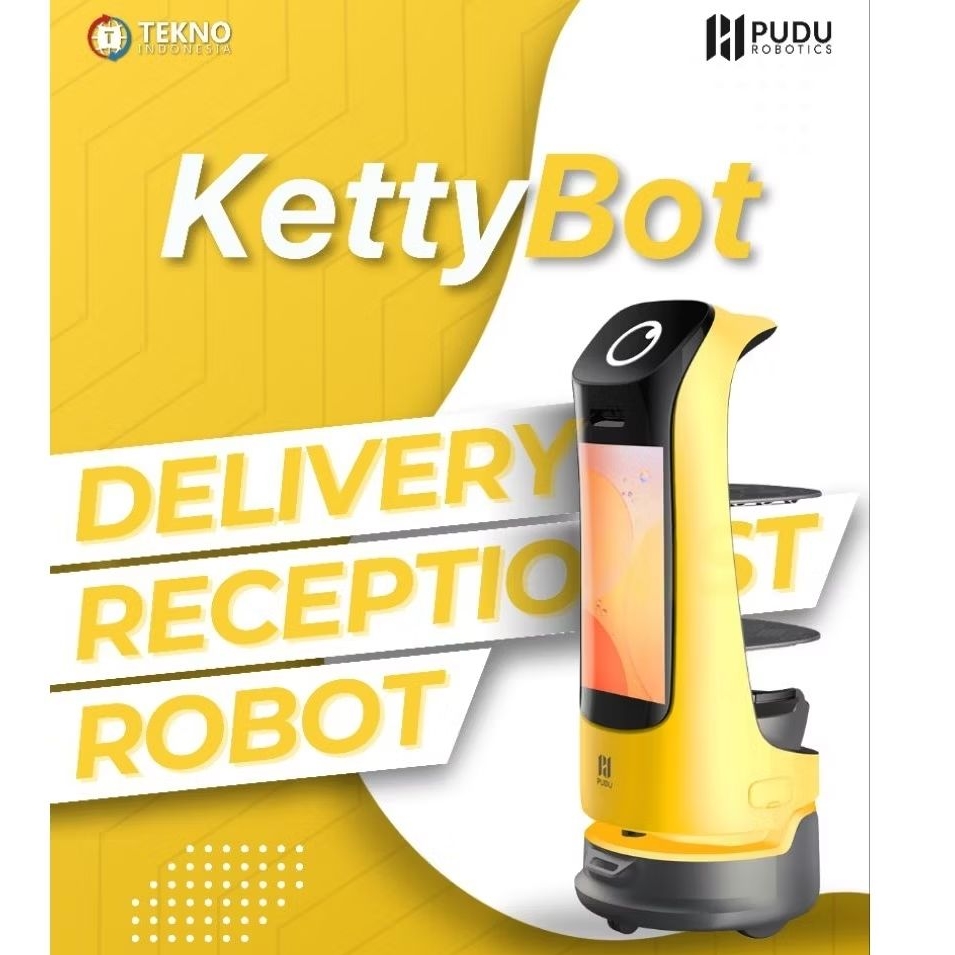 Pudu Robotics KettyBot AI Delivery Robot Display Iklan Ketty Bot LIDAR - Kuning Putih Robot