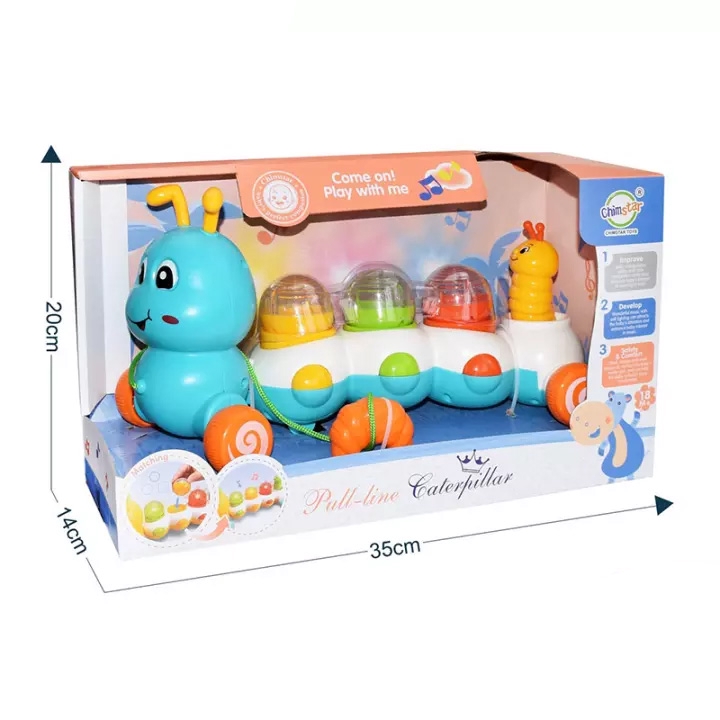 Pull Line Caterpillar - Mainan Ulat Lucu - Lampu Musik Tarik Random
