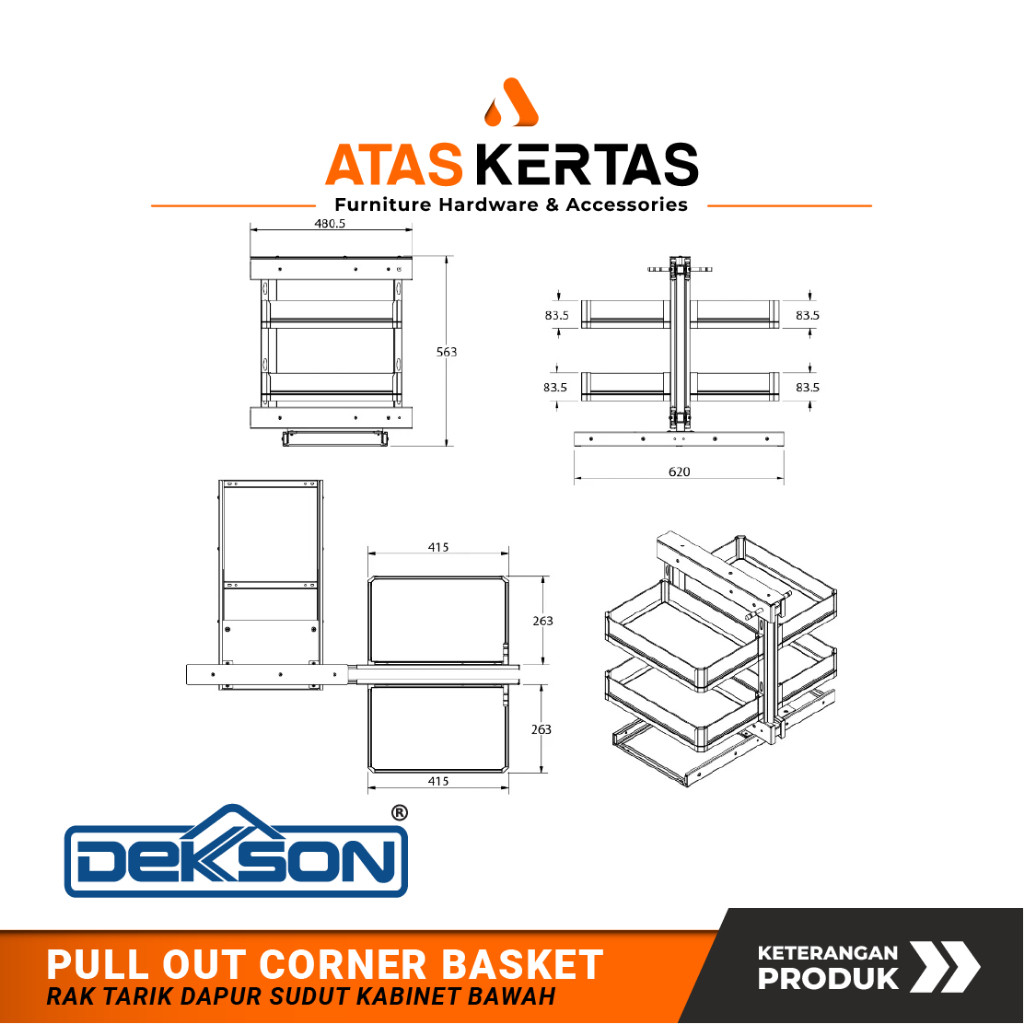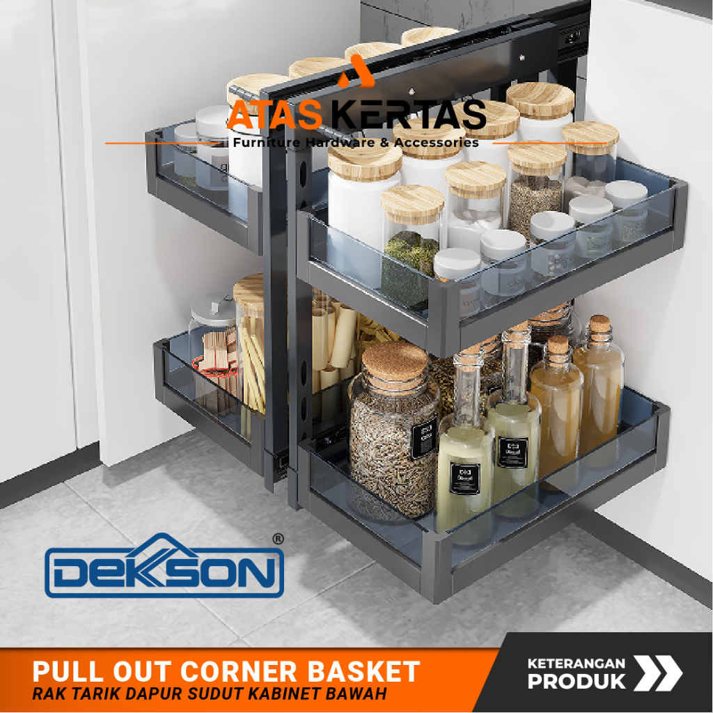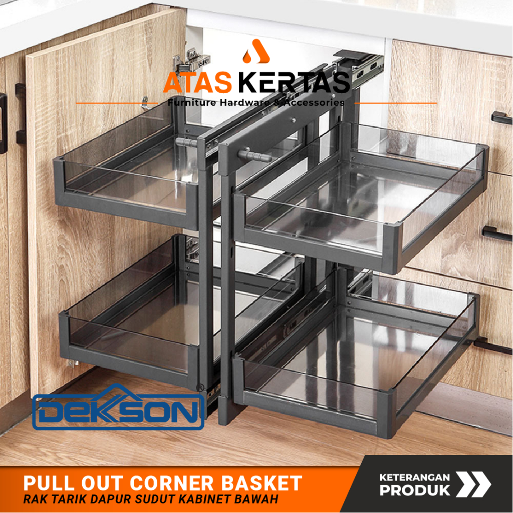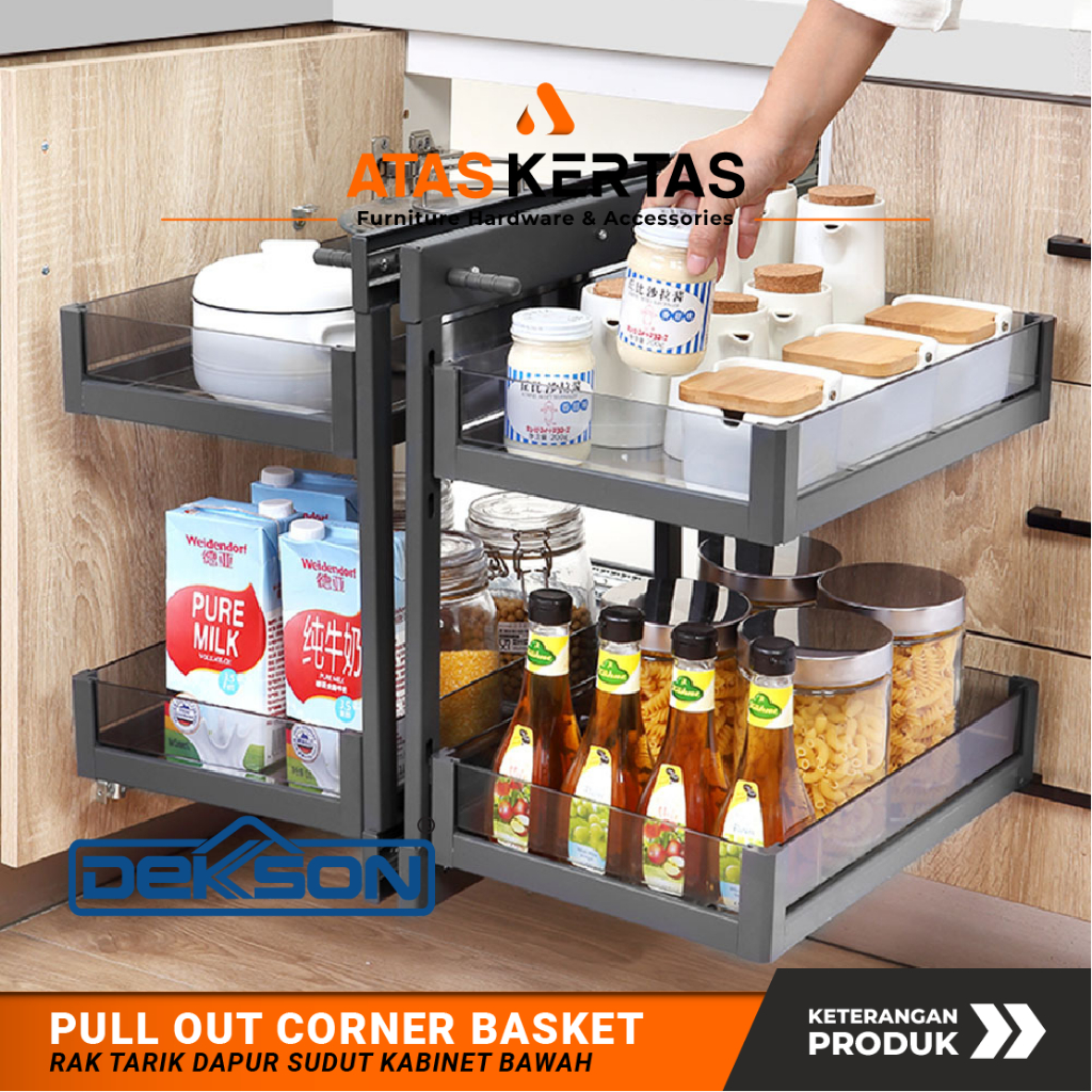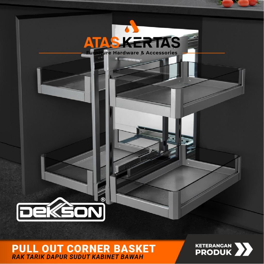 Dekkson Pull Out Corner Basket - Rak Tarik Sudut - Rak Tarik Bawah Dapur Kolong