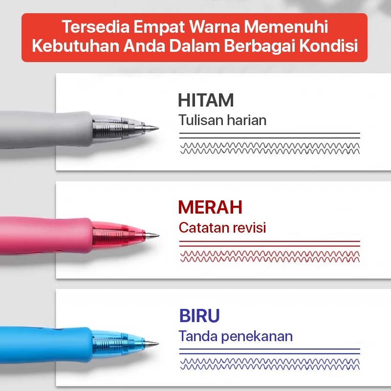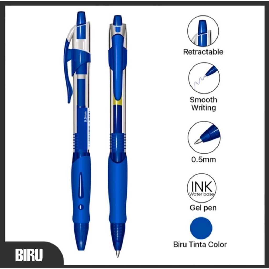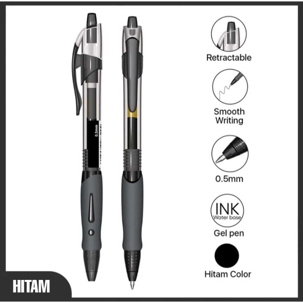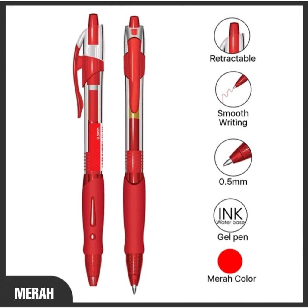 Pulpen Gel Hitam Biru Merah Model Tekan Klik / Pena Gel 0.5MM Penulisan Halus / Pen Gel Aeshtetic