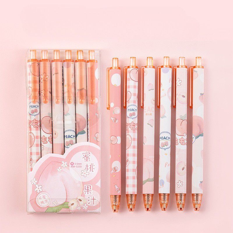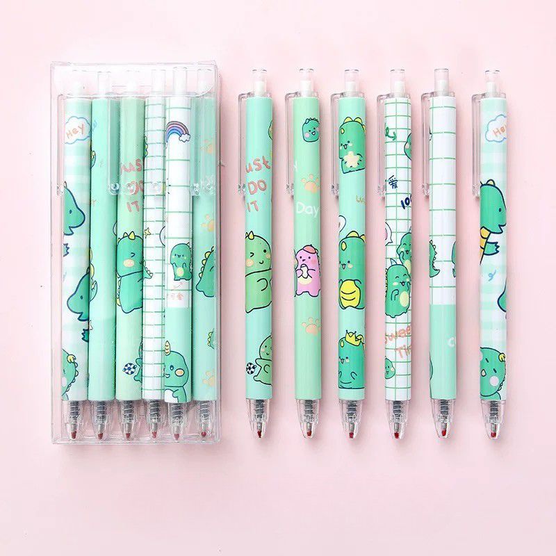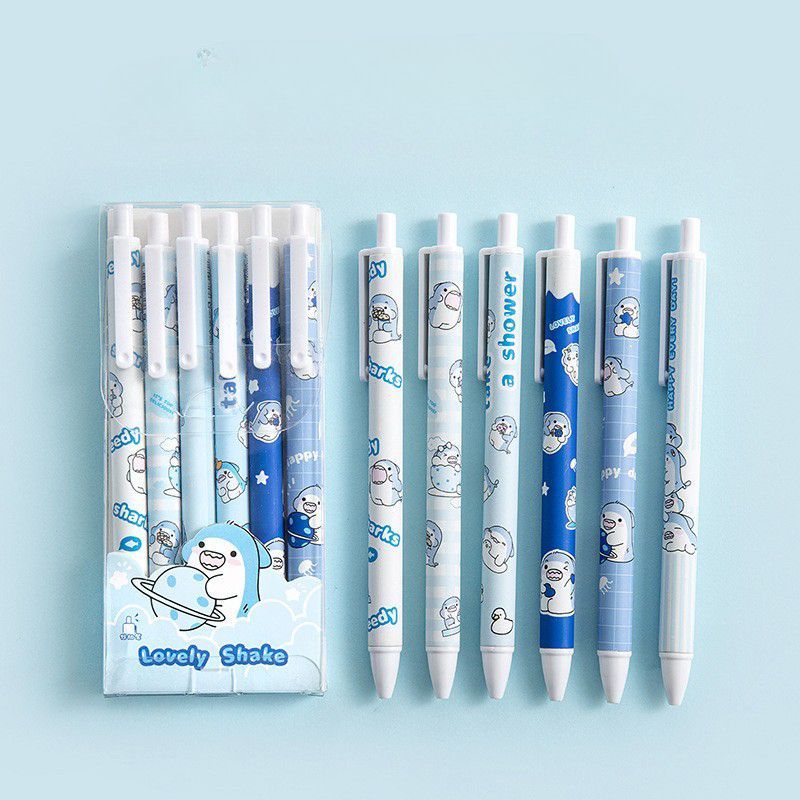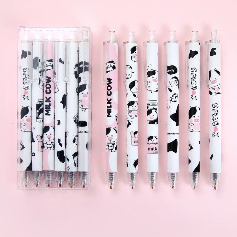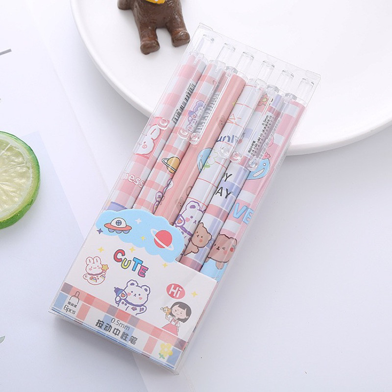 Pulpen Gel Lucu Set 6in1 / Pulpen Tinta Hitam / Pulpen Gel Hitam Set / Pulpen 1 Pack