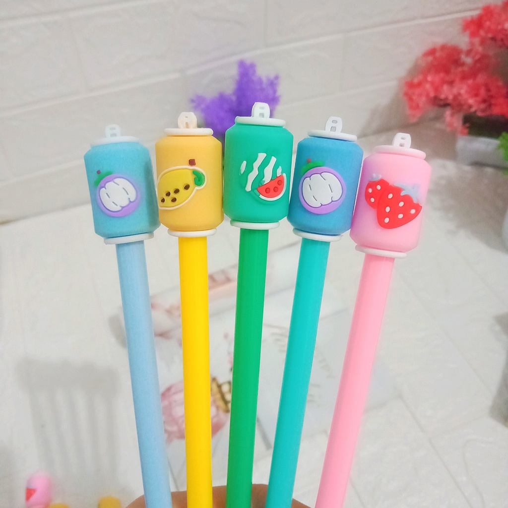 Pulpen Gel Motif Minuman Kaleng Buah buahan/ Pen tinta Karakter Minuman Kaleng Lucu Murah Black Ink Gel