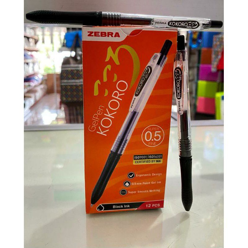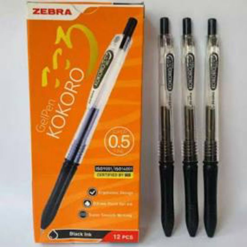 Pulpen Gel Zebra Kokoro Hitam Harga 1 pack (12 pcs)