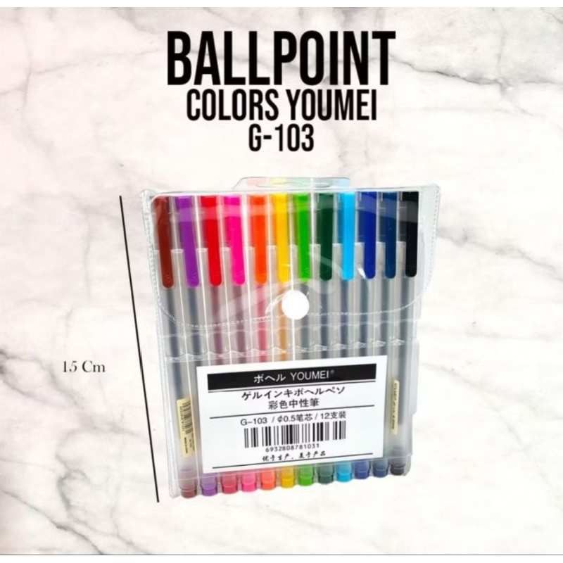 Pulpen Gell set 12 warna /Pulpen cair 12 warna youmei