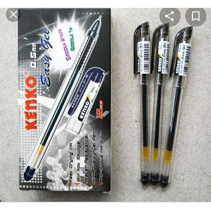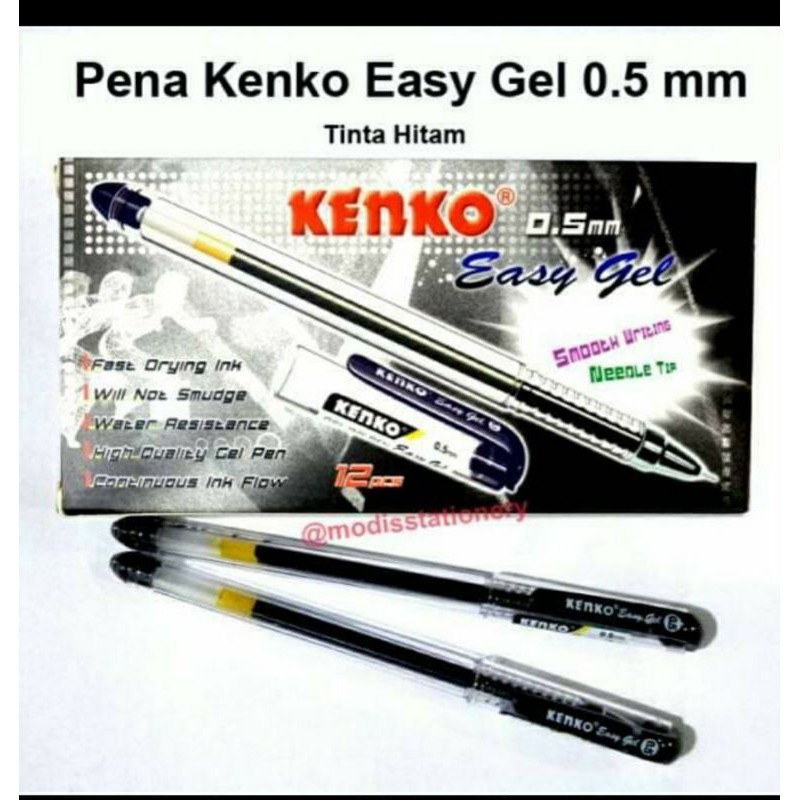 Pulpen Hitam Kenko Easy Gel Black Pen 0,5 mm - Ballpoint Kenko