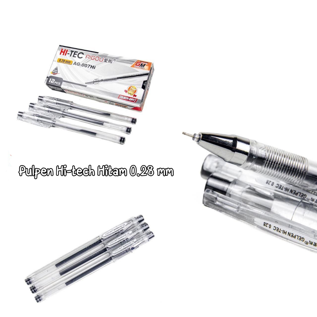 ( 1 Pak 12 Pcs ) Pulpen Hitech / Hi tech pulpen mata jarum 0.28 mm [12 PCS]