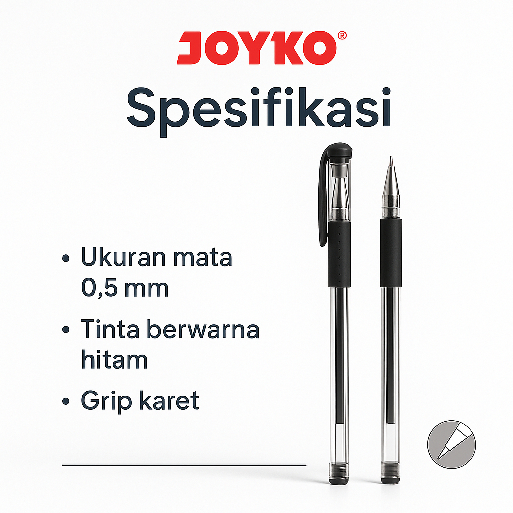Pulpen Joyko Gel Pen JK-100NT Tinta Hitam 0.5 mm Isi 12 Pcs