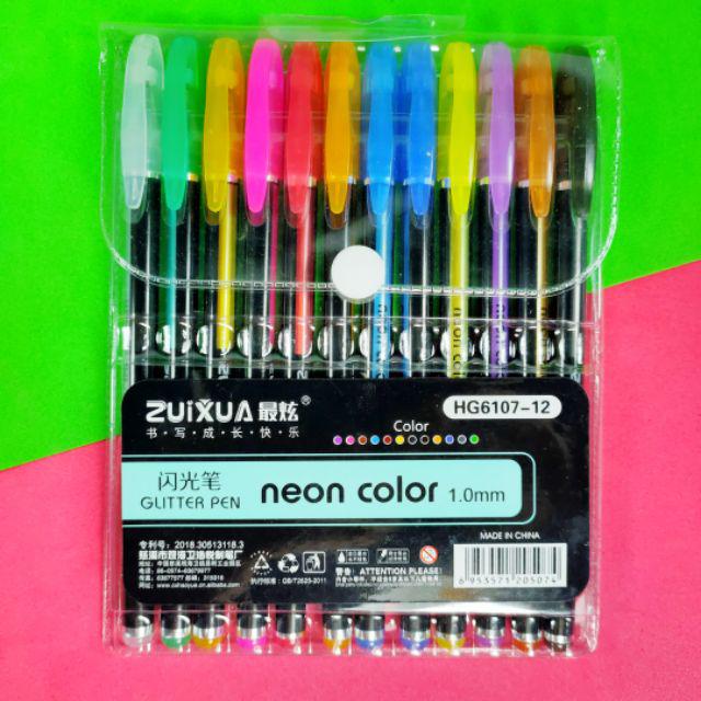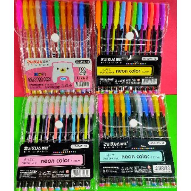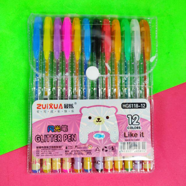 Pulpen Pen glitter 12pcs grosir - Pulpen warna warni glitter murah Atk grosir indo - Bolpen pelangi