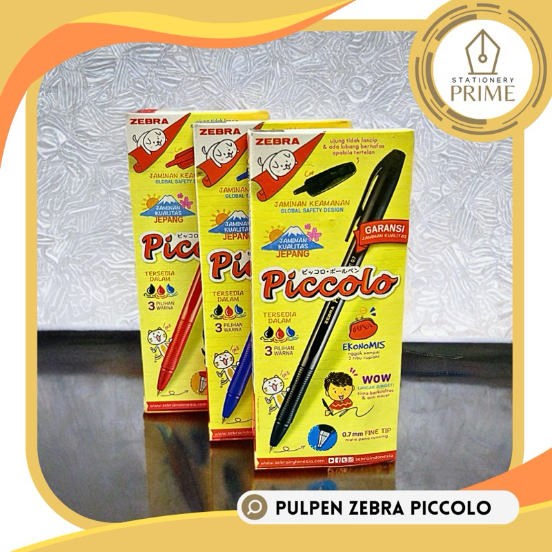 Pulpen Zebra PICCOLO Semi Gel Ink 0.7 mm Fine Tip Hitam Biru Merah (Isi 12 Pcs) Japan Quality