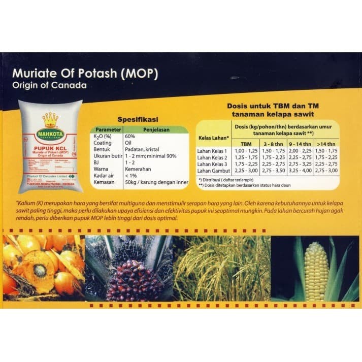 Pupuk KCL / MOP Mahkota - 50 kg - Muriate Of Potash - Kalium Klorida