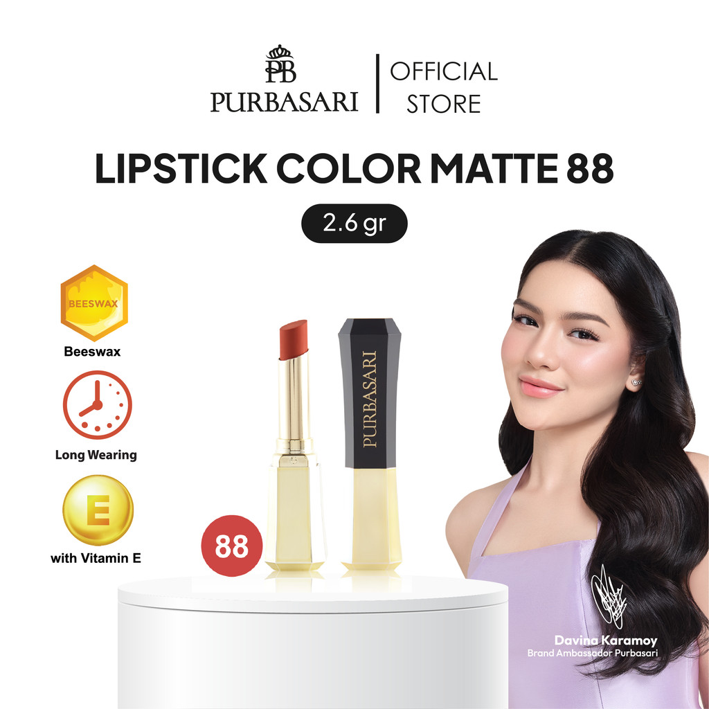 Purbasari Lipstick Color Matte 88 / Lipstick Matte / Lipstick tahan 12jam - Ringan dan lembut di bibir