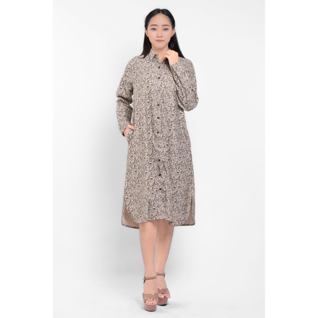 Puricia Midi Dress Wanita Motif Katun Lavina Thunder