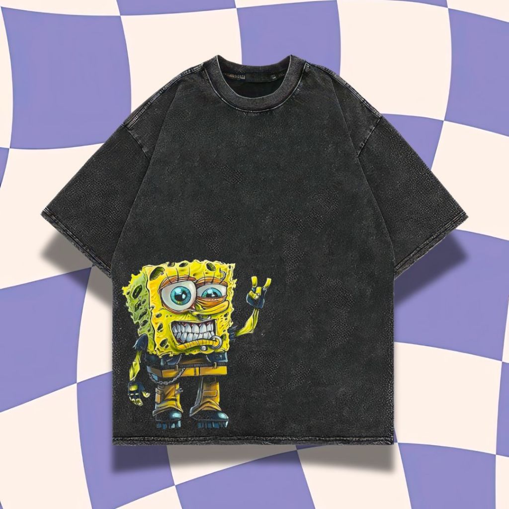 Purple Haze "Spongebob Squarepants" Oversized T-Shirt | Stone Wash | Kaos Oversize | Atasan