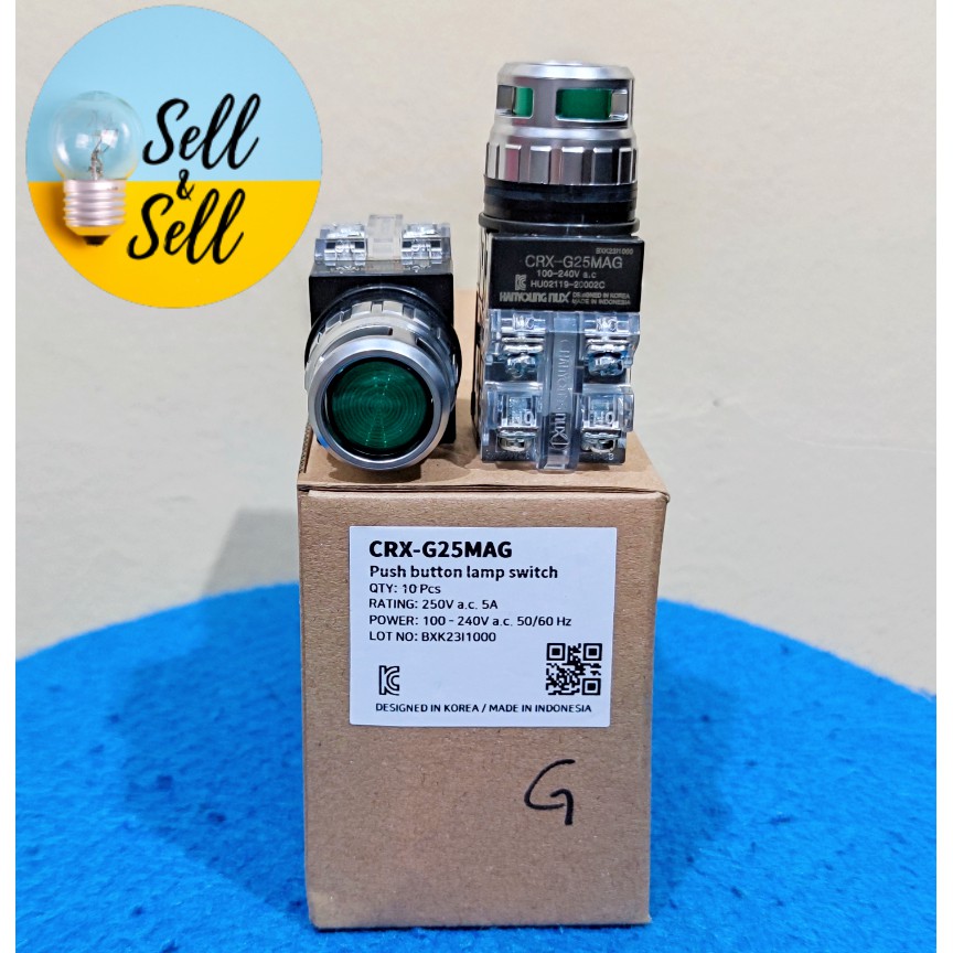 Push Button Lamp Hijau CRX-G25MAG Hanyoung Nux / Push Button Lampu Hijau 25mm Hanyoung Nux