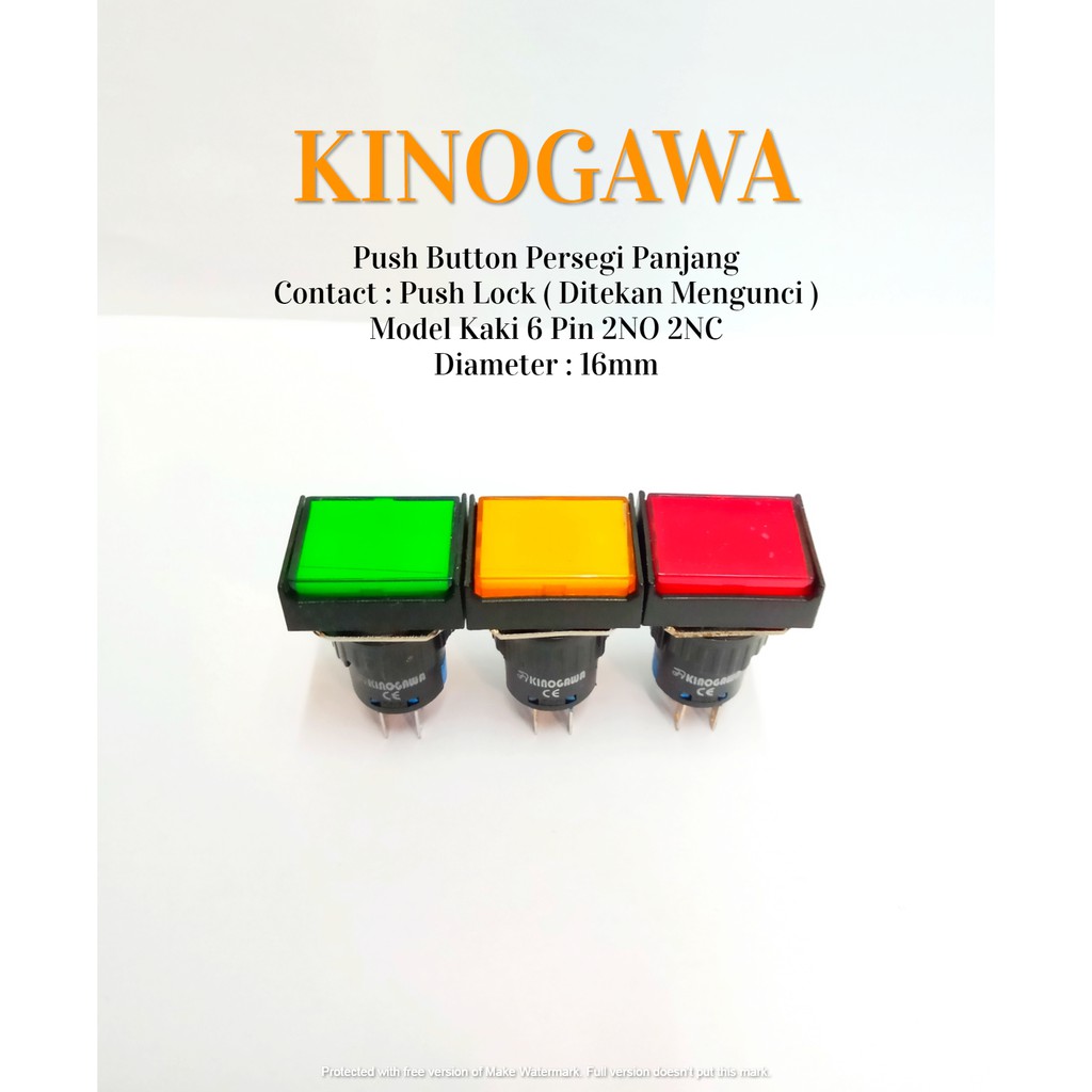 KINOGAWA Push Button Persegi Panjang 16mm 6 kaki Push Lock -Tombol ON-OFF Persegi Panjang Saklar Tekan Tombol Panel