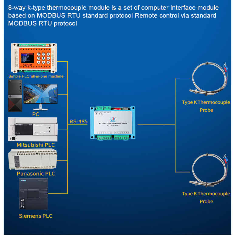 Pustakaashopp Huaqingjun 8-Channel K-type Thermocouple Module RS485 Ethernet MODBUS RTU/TCP Protocol Thermal Resistance for Probes