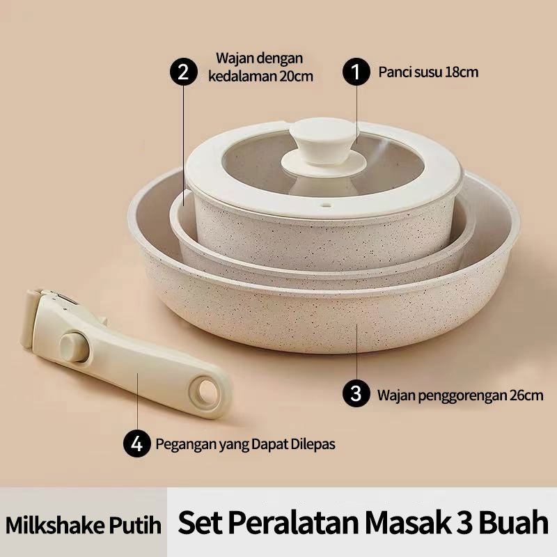 Putih Granit Antilengket Peralatan Masak Set Peralatan Masak Wajan Penggorengan 3 Pcs Untuk Semua Kompor