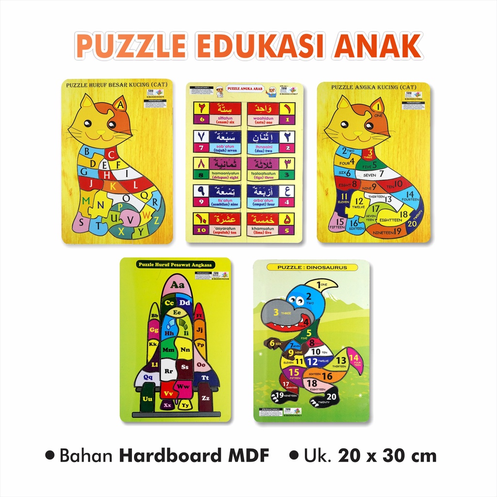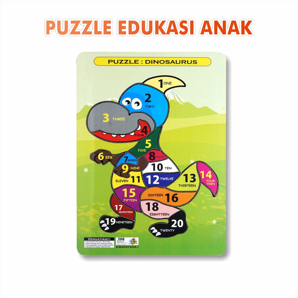 Puzzle Edukasi Anak / Puzzle Anak / Puzzle Kayu : DINOSAURUS ANGKA BAHASA INGGRIS HURUF BESAR