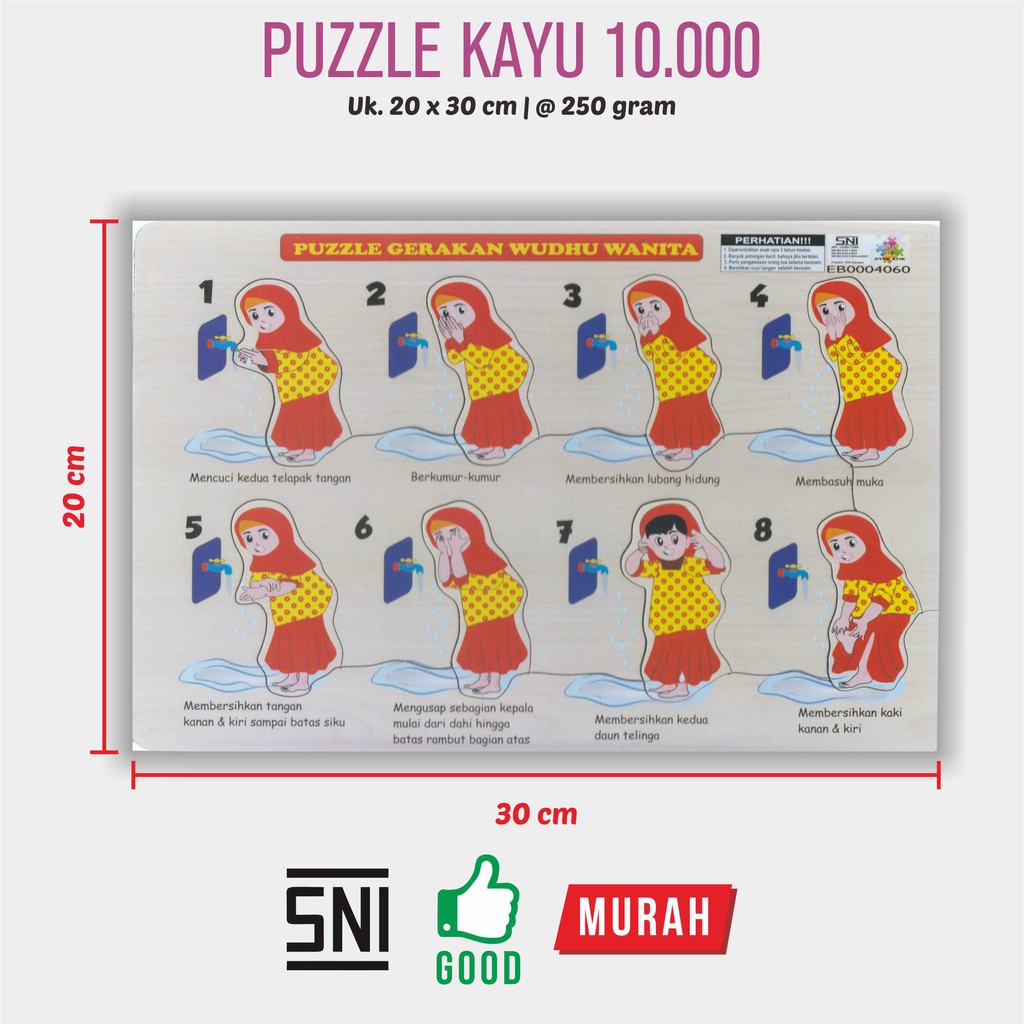 Puzzle Edukasi Anak / Puzzle Anak / Puzzle Kayu Mainan Edukasi Seri Islami Gerakan Wudhu Huruf Besar Kecil Angka