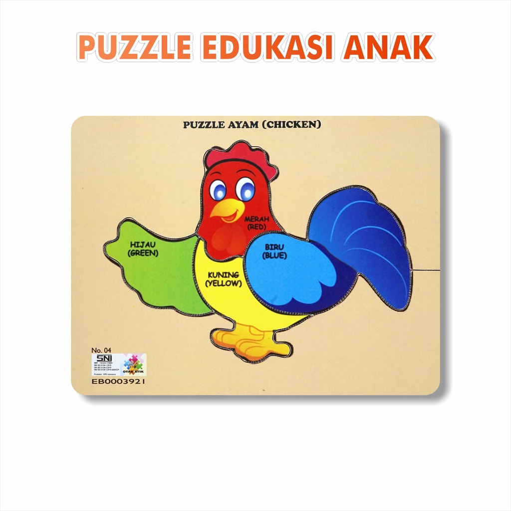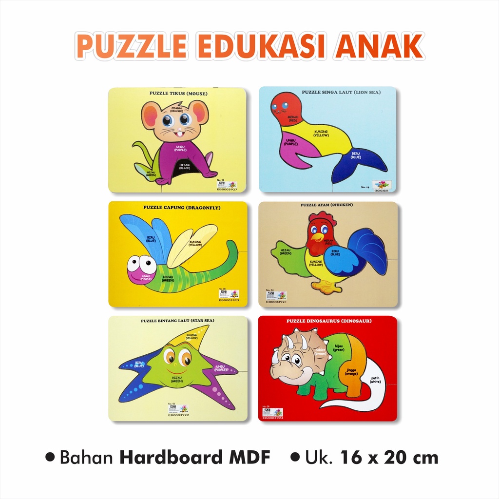 Puzzle Edukasi Anak / Puzzle Kayu / Puzzle Anak : Capung / Tikus / Songa Laut / Dinosaurus / Ayam