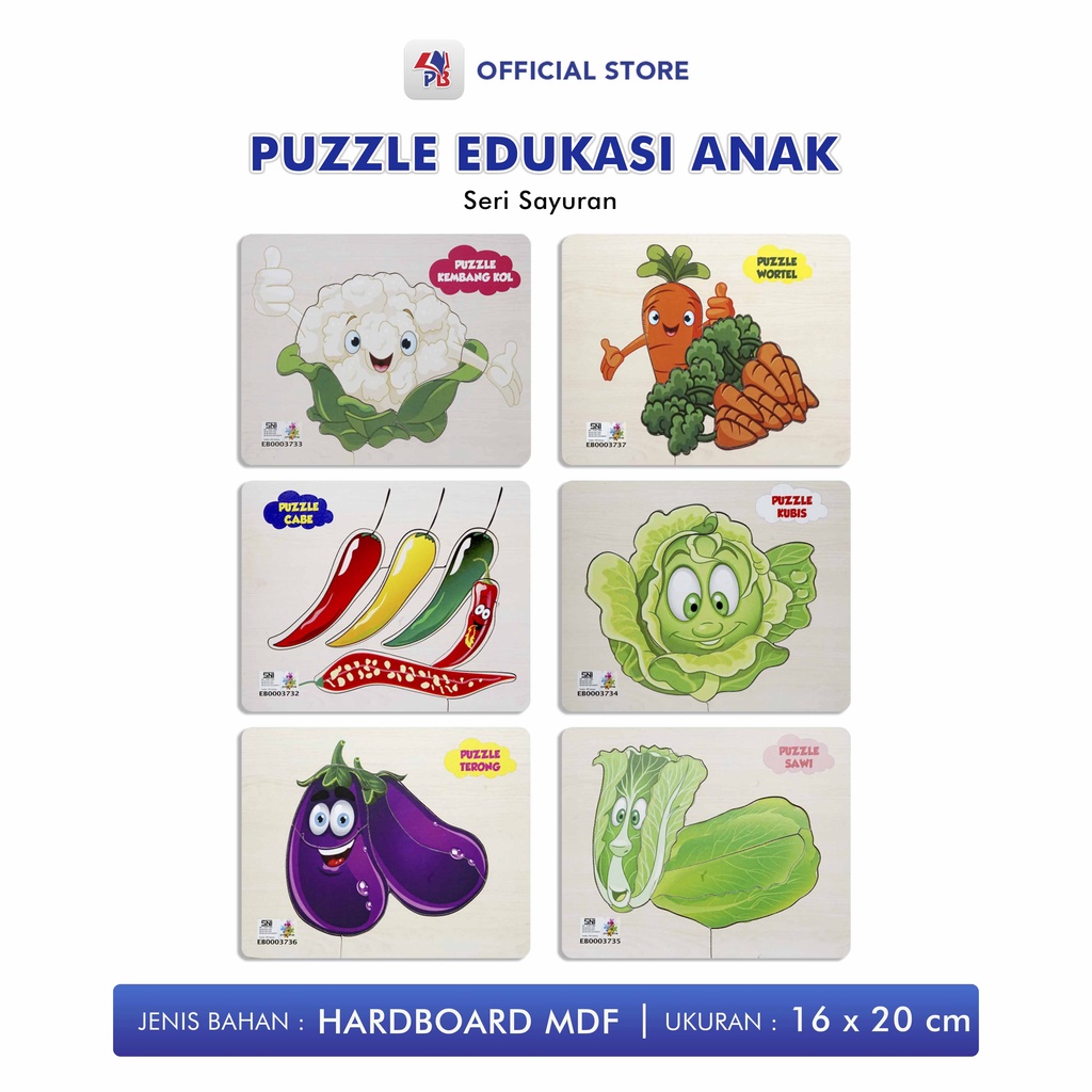 Puzzle Edukasi Anak / Puzzle Kayu / Puzzle Anak Puzzle Sayur Sawi Terong Kubis Kembang Kol / King Puzzle Edukasi - EB