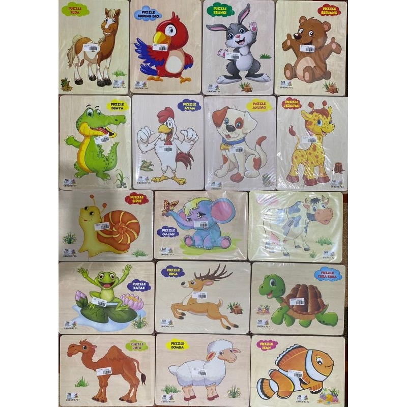Puzzle Edukasi Anak - Puzzle Kayu - Puzzle Anak Seri Hewan & Buah - Puzzle Lokal Satuan