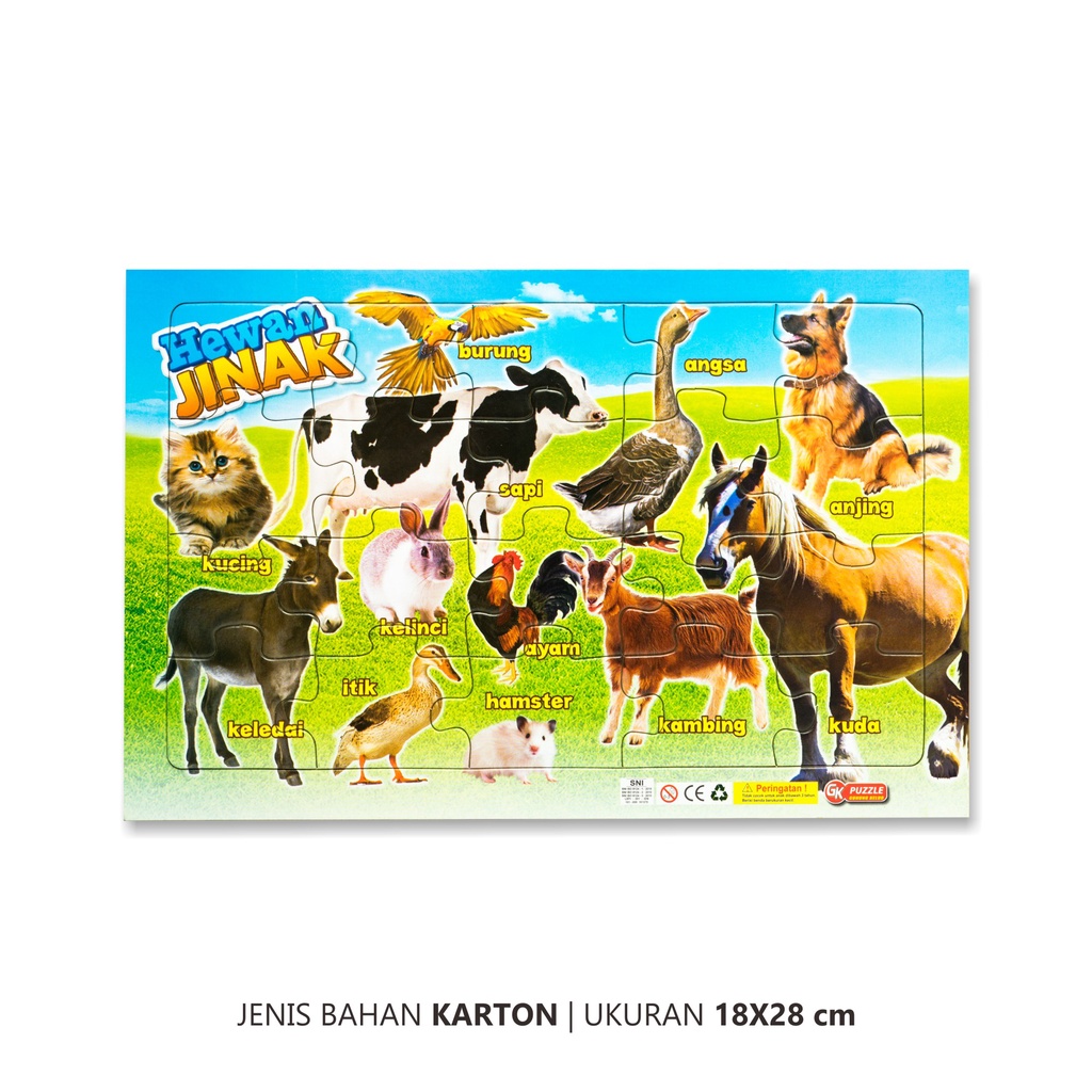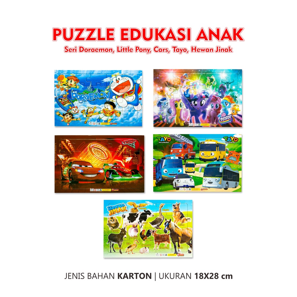 Puzzle Karton Mainan Edukasi Anak Bergambar Karakter Terlengkap Seri Cars / Doraemon / Little Pony / Tayo / Hewan Jinak