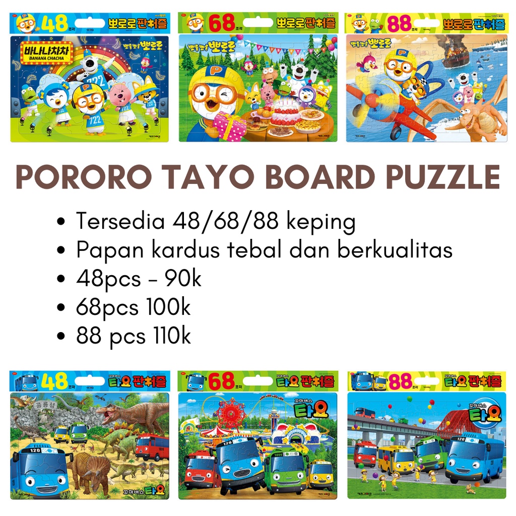 Puzzle board karakter tayo/pororo/robocar poli
