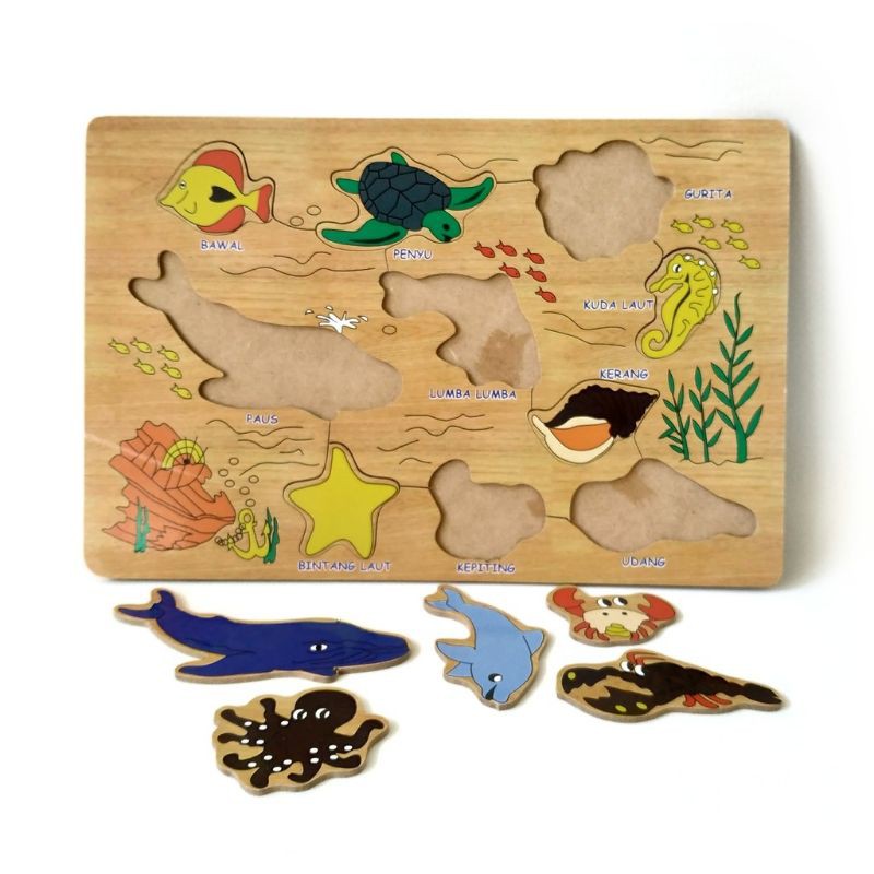 Puzzle hewan laut/binatang laut - puzzle kayu edukasi