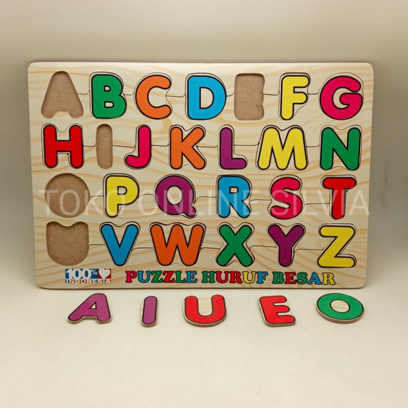 Puzzle huruf abjad abc mainan anak edukasi edukatif montessori original kayu jigsaw cowok laki laki cewek 3 tahun