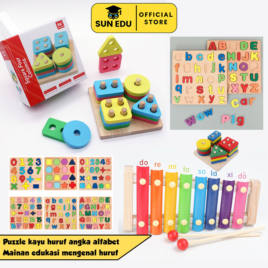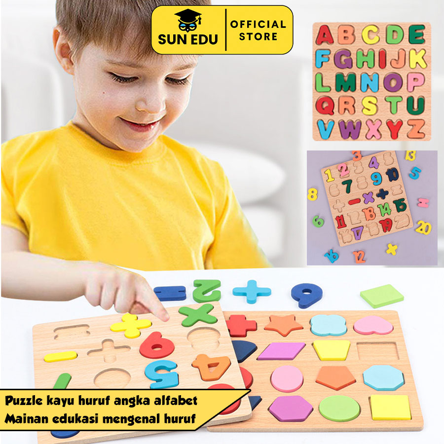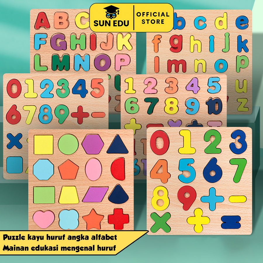 Puzzle kayu huruf angka alfabet/ Mainan edukasi mengenal huruf