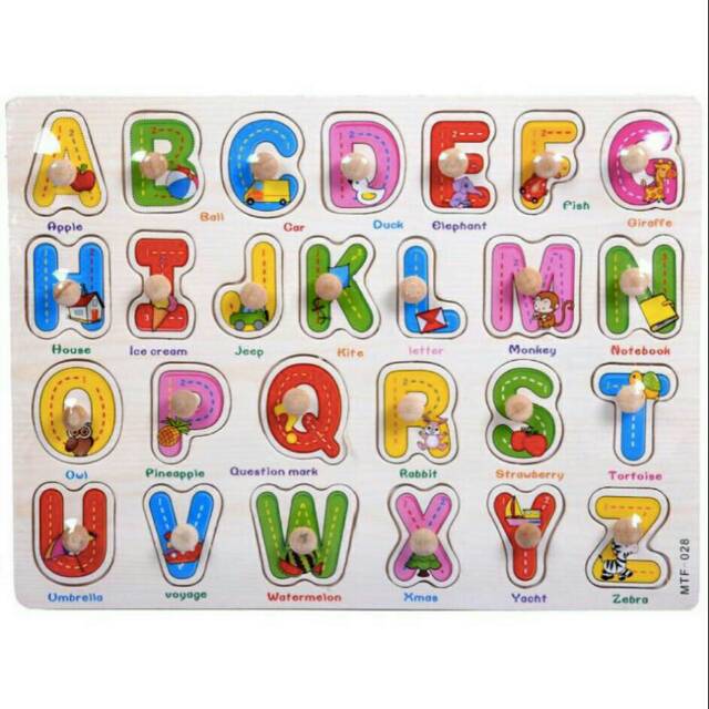 Puzzle knob abjad/ puzzle dengan pegangan / puzzle huruf / puzzle kayu / puzzle abc / puzzle huruf besar