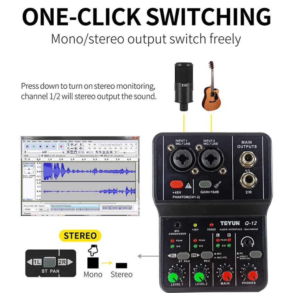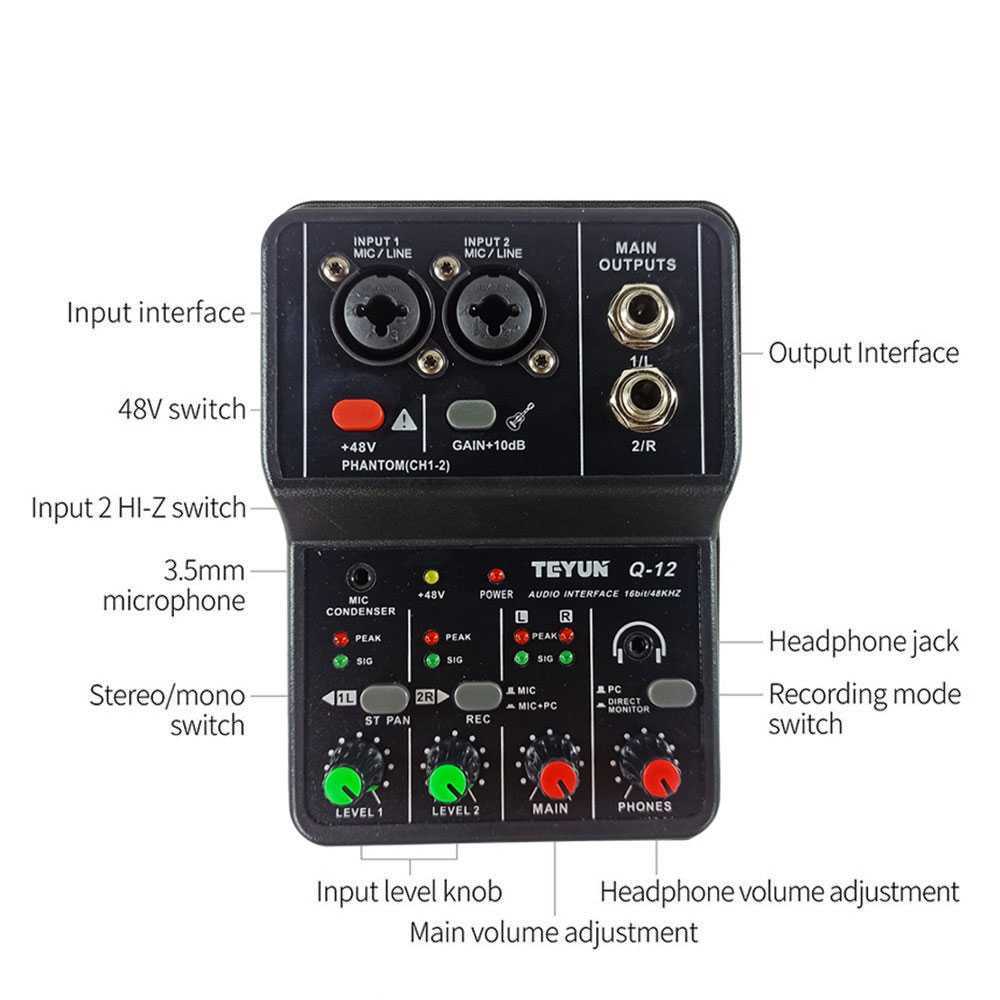 Q-12 Premium Soundcard Digital Recording USB MIXER / Sound Card Gitar Listrik Piano Elektrik ke PC