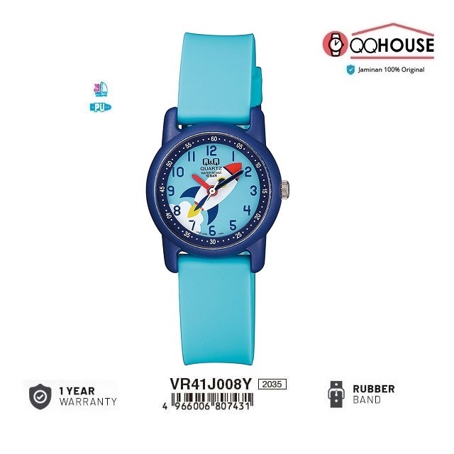 Q&Q QNQ QQ VR41 VR41J VR41J008 VR41J008Y ANALOG KIDS WATCH RUBBER BAND JAM TANGAN ANAK TALI KARET