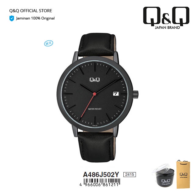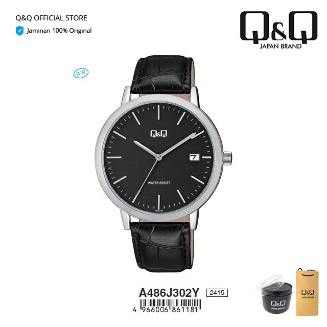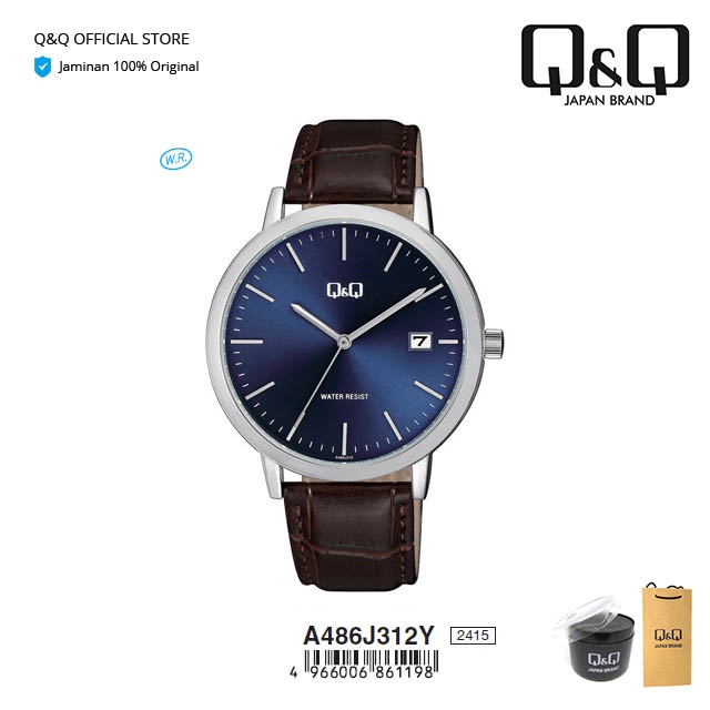 Q&Q QnQ QQ Original Jam Tangan Pria Fashion Analog Kulit Leather - A486 A486J Water Resist 3 BAR