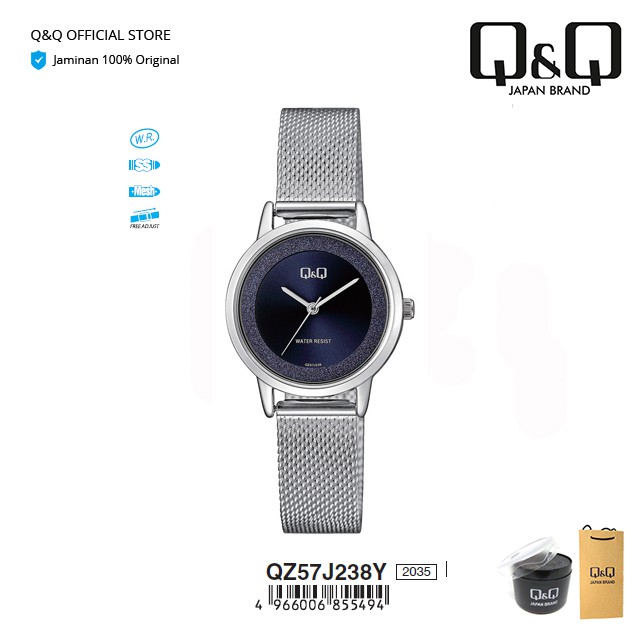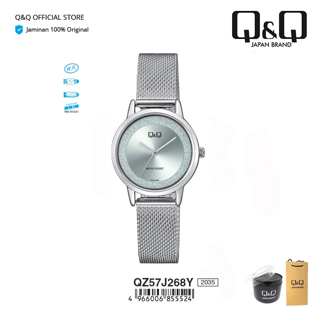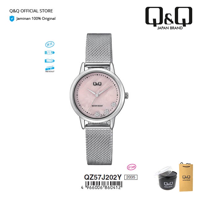Q&Q QnQ QQ Original Jam Tangan Wanita Analog Stainless Steel - QZ57 QZ57J Tahan Air 3 BAR