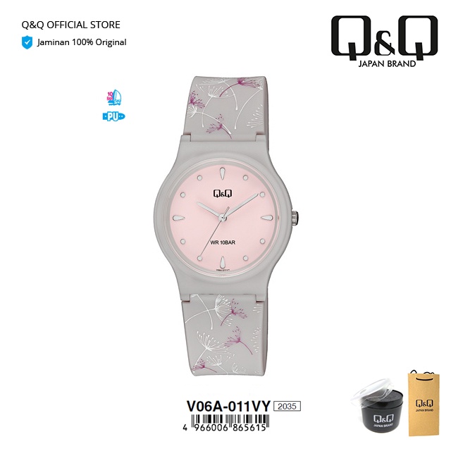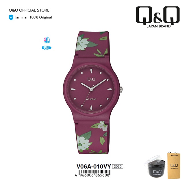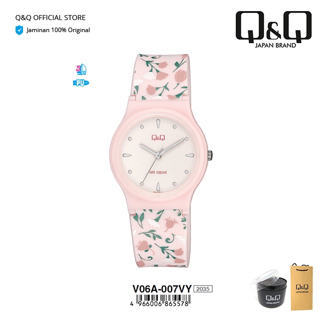 Q&Q QnQ QQ Original Jam Tangan Wanita Motif Bunga Analog Rubber - V06 V06A Water Resist 10 BAR