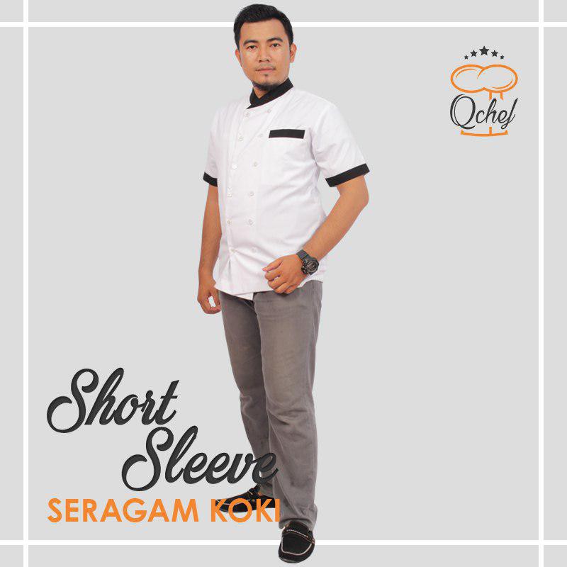 Q-chef Short Sleeve Baju Koki Seragam Chef Kemeja Koki Baju Chef Lengan Pendek Bahan Verlando Tropical