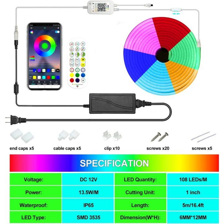 QIMEDO Lampu LED Strip RGB Running Neon Flex 5 Meter Gerak Lampu