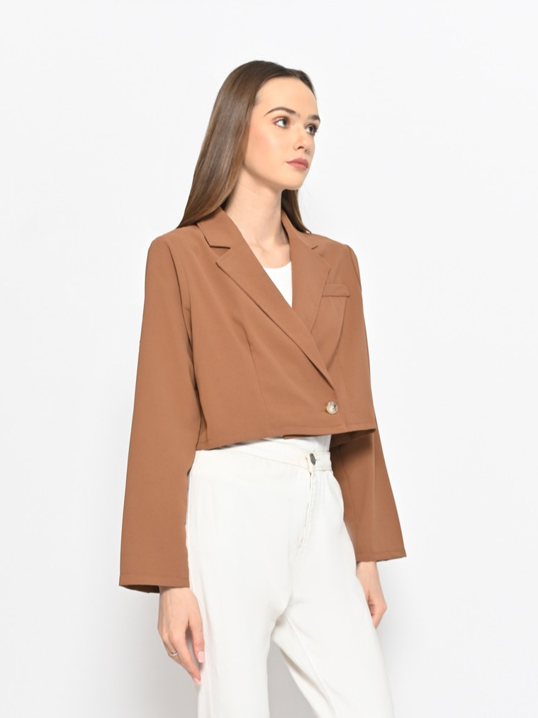 QUEENTIN Crop Blazer Casual Wanita 0164 Katun Zora Polos Premium Lengan Panjang