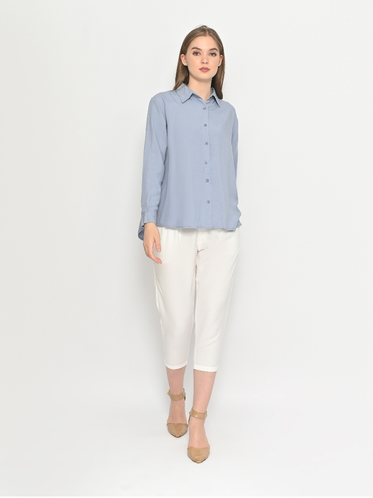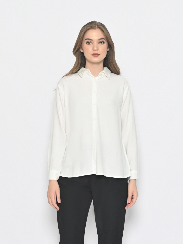 QUEENTIN Kemeja Casual Wanita 0314 Katun Rayon Polos Premium Lengan Panjang