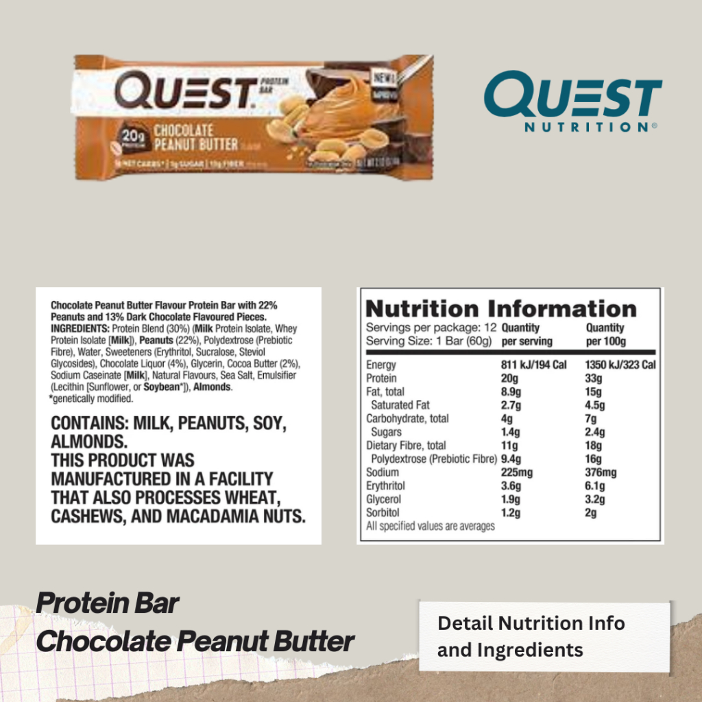 Quest Protein Bar 60g Rasa Chocolate Peanut Butter Nutrition Energy Healthy Snack Bars Fitness Gym Low Sugar High Protein High Fiber