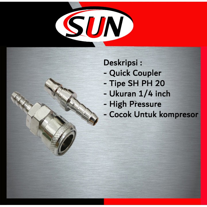 Quick Coupler Angin Set SH PH 20 1/4 Inch Sambungan Kompresor Kopler kupler Cupler